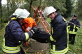 Jede Wehr mußte 4 Stationen bewältigen: eine Person aus einem Tiefbrunnen retten, eine Garage stand in Vollbrand, eine verunfallte Person musste unter einem Fahrzeug herausgeholt und erstversorgt werden und eine Höhenrettung war zu absolvieren!